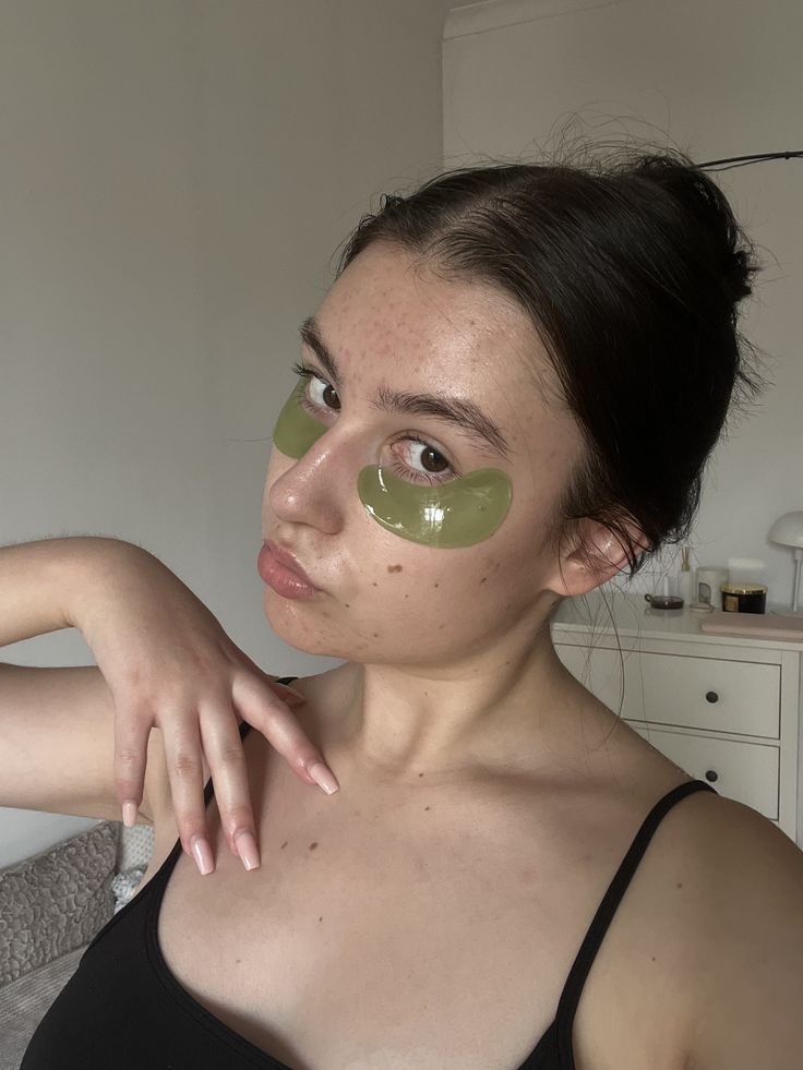 Leave them on for about 15–20 minutes. You’ll feel a gentle cooling sensation as they work. Once done, tap in the leftover serum for a silky finish.